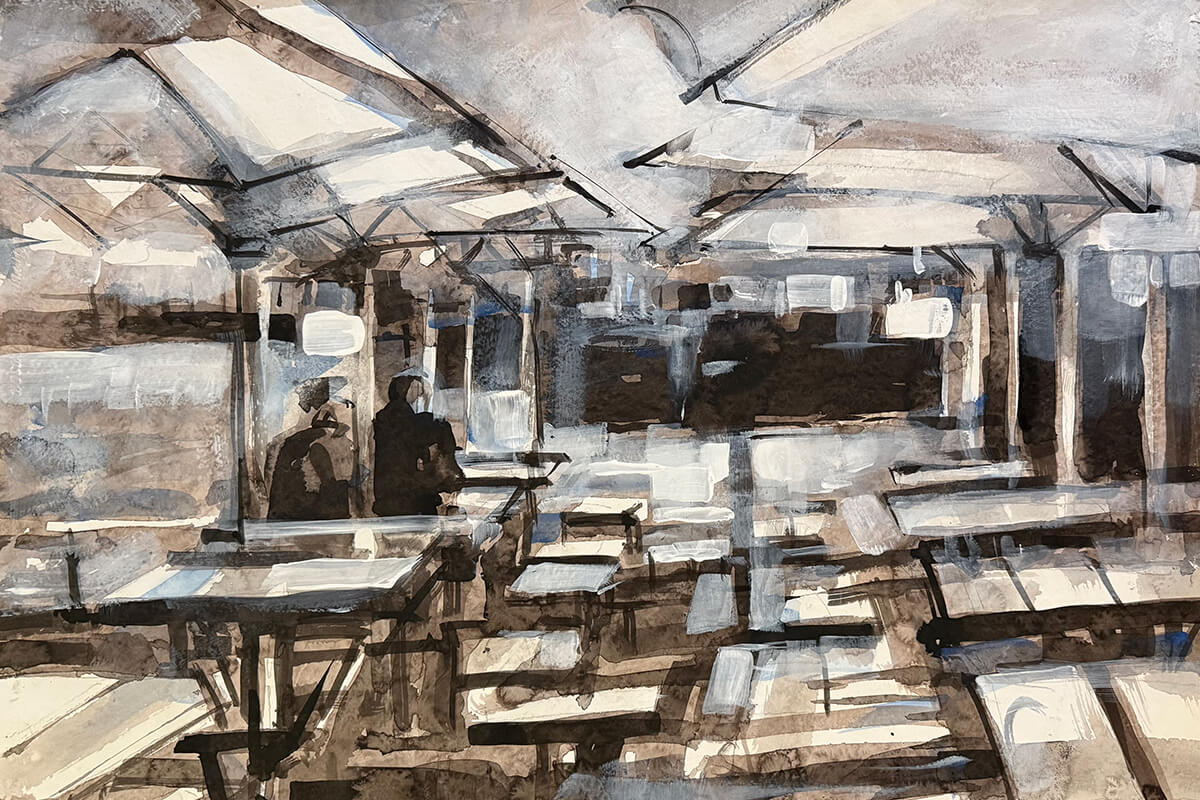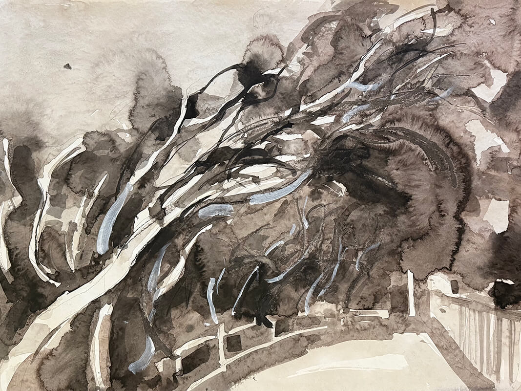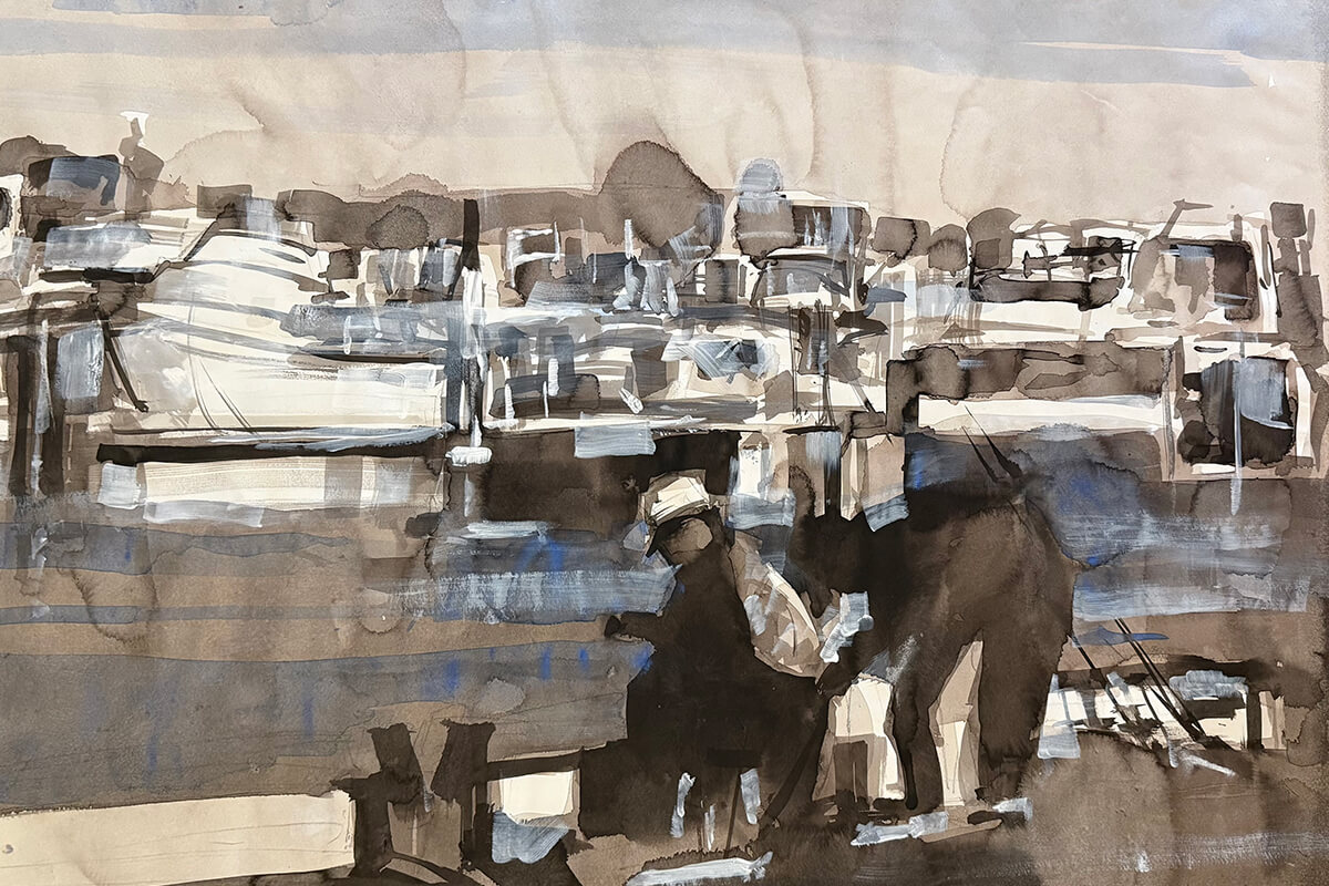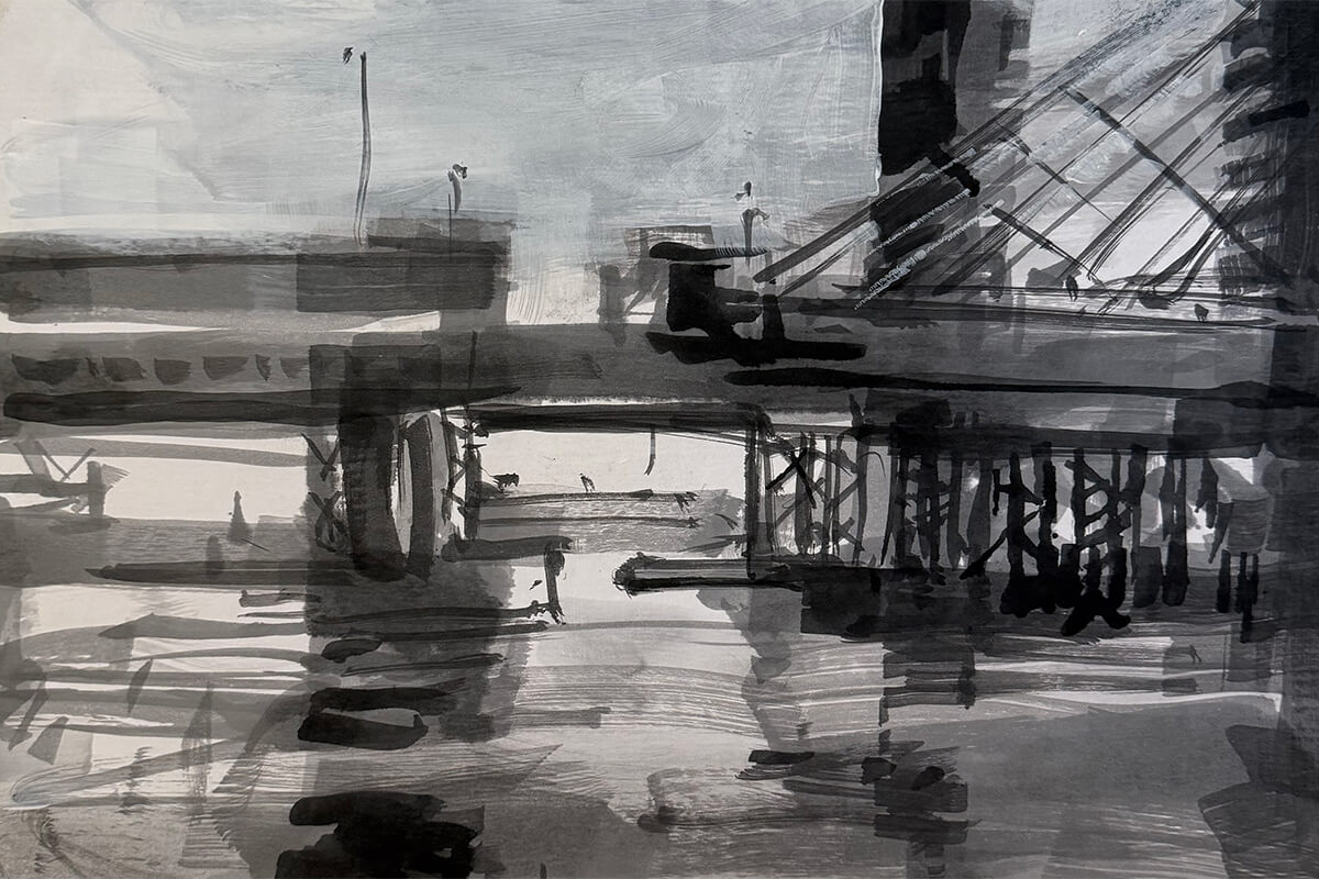 The port city has long anchored the artist's life and practice. This series of monochrome drawings and paintings explores the geometry and rhythm of the built environment. The Fremantle Bridge appears as a recurring motif - an image the artist has revisited throughout his career.